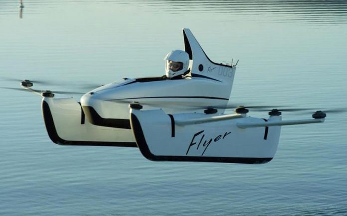Kitty Hawk, la start-up derrière le projet, affirme que « Flyer » est désormais fin prêt pour des tests grandeur nature sur un lac proche de Las Vegas.