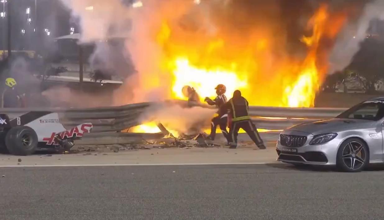Victime d’un terrible accident lors du Grand Prix de F1 de Bahreïn ce dimanche, le Français Romain Grosjean a heureusement réussi à se sortir de sa voiture en flammes. Grâce aux équipements de sécurité, à son instinct de survie, mais également à l’intervention très rapide de la voiture médicale.