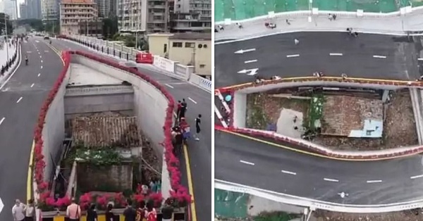 La propriétaire d’une maison de la ville chinoise de Canton ou Guangzhou a refusé de déménager de son logement pour laisser la place à la construction d’un pont autoroutier. Les autorités locales ont décidé de réaliser l’ouvrage malgré tout autour de sa maison.