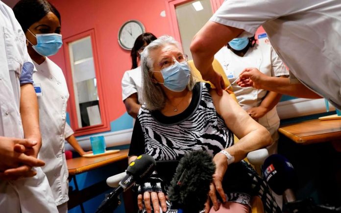 La première personne vaccinée contre le Covid-19 en France est une femme de 78 ans, Mauricette. Elle a reçu dimanche 27 décembre la première dose du vaccin de Pfizer-BioNTech à Sevran, en Seine-Saint-Denis, à l’hôpital René-Muret, selon une journaliste de franceinfo présente sur place. « Même pas mal », a réagi la septuagénaire, souriante, juste après l’injection. « Je vais très bien. Des piqûres, j’en ai eu ! » « Je suis très émue », a-t-elle ajouté quelques instants plus tard. Aux soignants présents autour d’elle qui lui rappelaient qu’elle est la première personne vaccinée en France, elle a répondu tout sourire : « Je suis la vedette, alors ! »