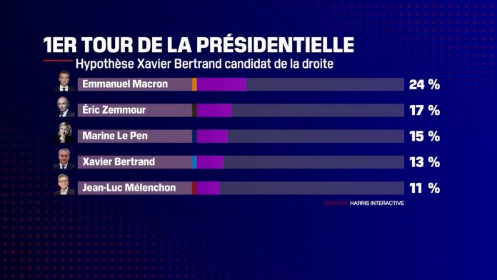 Valérie Pécresse est distancée (10.5%, –1.5).