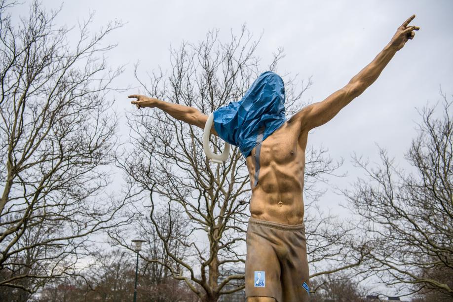 Cuvette de toilette et écharpe d’Hammarby accrochées au bras, sac plastique sur la tête… Près du stade de Malmö, Zlatan Ibrahimovic n’a plus rien à voir avec une légende. Depuis ce mercredi, les supporters de son ancien club ont dégradé sa statue inaugurée en octobre dernier. La cause ? Ils lui reprochent d’être devenu copropriétaire d’Hammarby, troisième du dernier championnat suédois. « Cette statue n’a plus d’importance quand on voit ce qu’il fait maintenant.