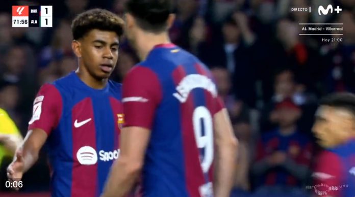 Le Barça a vécu une après-midi compliquée à Montjuic contre Alavés. En étant menés dès la 18e seconde, les Catalans ont finalement gagné 2-1 grâce à un doublé de Robert Lewandowski. Cependant, le joueur polonais, tout comme son équipe, n’a pas affiché sa meilleure forme. Souvent tendu, il a même laissé Lamine Yamal dans une situation gênante.