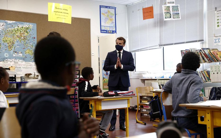 Portant pour la première fois un masque grand public, en tissu bleu nuit, le président français Emmanuel Macron a visité mardi matin une école de Poissy (Île-de-France) et discuté avec des maires pour tenter de rassurer sur une rentrée très contestée après le 11 mai.