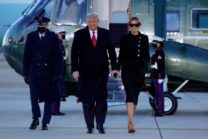 Donald Trump et son épouse Melania, toute vêtue de noir, ont quitté la Maison Blanche vers 8h15 locales (14h15 françaises) à bord de l’hélicoptère Marine One, qui doit les emmener sur la base aérienne d’Andrews, d’où ils s’envoleront pour la Floride.