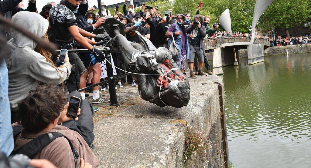 #Bristol statue of Edward Colston has been pulled down and pushed into the harbour during the #BlackLivesMattter march pic.twitter.com/ME1yxAhw7G