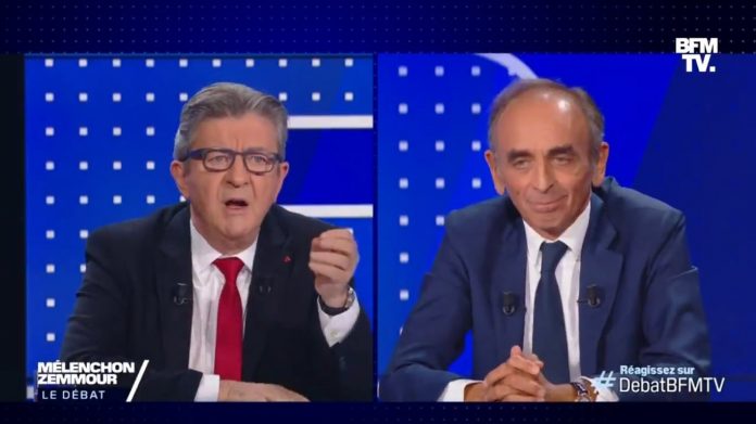 Le duel entre Jean-Luc Mélenchon et Eric Zemmour a rassemblé 3,81 millions de télespectateurs ce jeudi soir sur BFMTV entre 21h et 23h10.