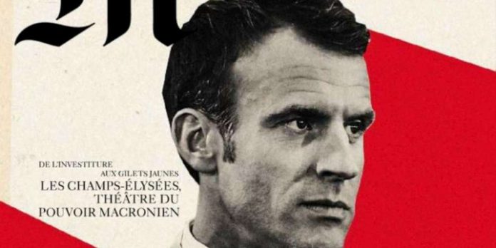 Un Emmanuel Macron raide et sévère en noir et blanc, sur un fond de couleurs blanches et rouges. Accusé par de nombreux membres de la majorité d’avoir choisi pour son magazine hebdomadaire une couverture utilisant « les codes de l’iconographie nazie », le journal Le Monde a présenté ses excuses, samedi 29 décembre.