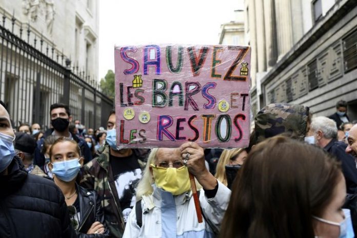 Plusieurs centaines de restaurateurs, soutenus par des élus locaux de tous bords, ont donné de la voix devant le tribunal de commerce pour protester contre la fermeture annoncée des bars et des restaurants.
