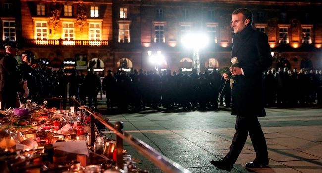 Emmanuel Macron a déposé vendredi soir une rose blanche devant le mémorial improvisé par les passants devant la statue du général Kléber, à son arrivée à Strasbourg, trois jours après l’attentat qui a ensanglanté la ville.