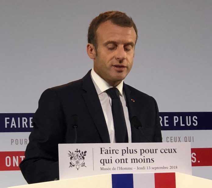 Le symbole a fait son apparition sur le pupitre du chef de l’Etat, lors de la présentation du plan pauvreté au musée de l’Homme à Paris, jeudi 13 septembre.
