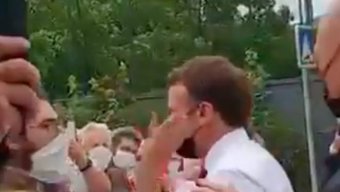 Ce mardi, en début d’après-midi, Emmanuel Macron a été giflé par un homme, lors d’un déplacement dans la Drôme, à Tain-L’Hermitage. Dans une vidéo diffusée sur Twitter et authentifiée par l’entourage du chef de l’État, on voit un homme hurler le cri de guerre royaliste « Montjoie Saint Denis ! », ainsi que « À bas la macronie », puis tenter de gifler le président.