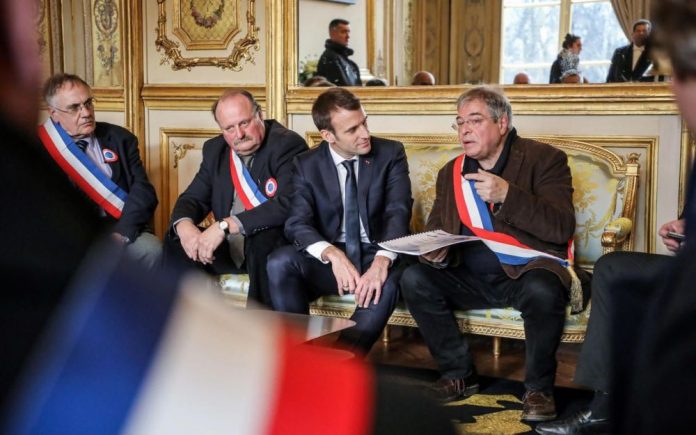 Le chef de l’Etat, en visite surprise au conseil municipale de Gasny, doit ensuite participer à Grand Bourgtheroulde à une réunion avec 600 maires, venus relayer les doléances de leurs habitants.