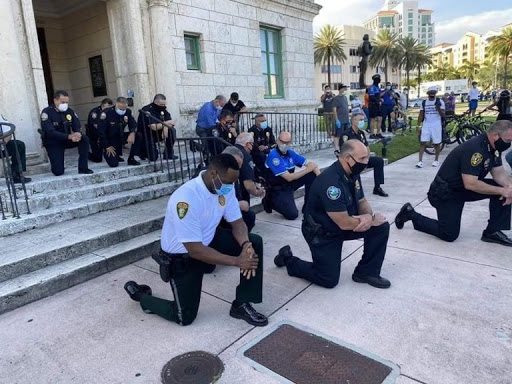 De New York à Miami, en passant par Orlando et Santa Cruz, des policiers américains ont affiché leur soutien aux manifestants réunis après la mort de George Floyd, avec des paroles et gestes forts.