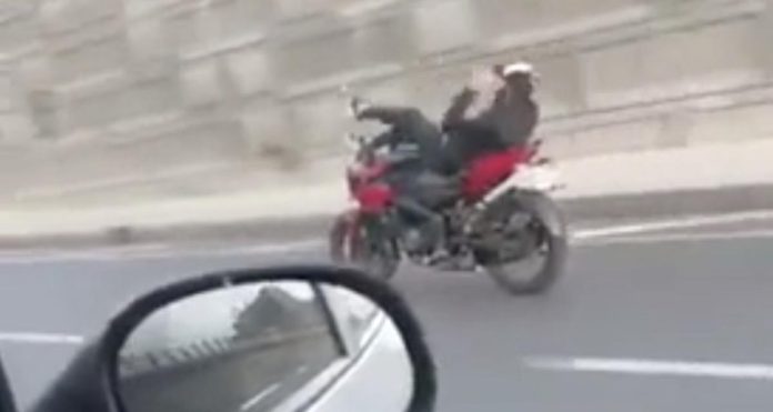 Les policiers ont repéré le motard en excès de vitesse sur l’autoroute, déclenchant une poursuite pour mettre fin à ses acrobaties dangereuses. Après quelques kilomètres, le motard a choisi de se rendre. Les autorités ont visionné les images de sa caméra embarquée, révélant des manœuvres spectaculaires et imprudentes, y compris des roues arrière au milieu du trafic.