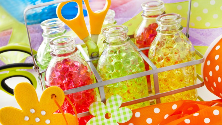 Les perles d’eau sont des perles translucides et vivement colorées qui ont la propriété de pouvoir absorber 400 fois leur poids en eau. Elles sont généralement utilisées comme articles de décoration, notamment pour caler des fleurs coupées dans un vase. L’entourage des jeunes enfants doit être particulièrement vigilant à ce qu’ils ne puissent y accéder.