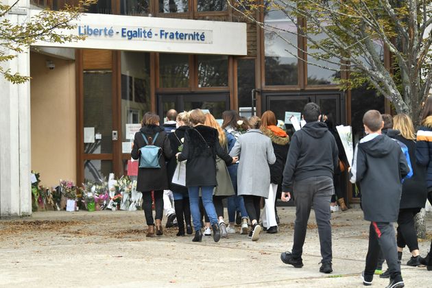 Quelques roses, déposées samedi matin devant l’entrée du collège du Bois d’Aulne, témoignent de l’émotion des parents d’élèves au lendemain de la décapitation d’un professeur d’histoire à Conflans-Sainte-Honorine (Yvelines) par un homme d’origine tchétchène – un « attentat islamiste caractérisé », selon les mots d’Emmanuel Macron.