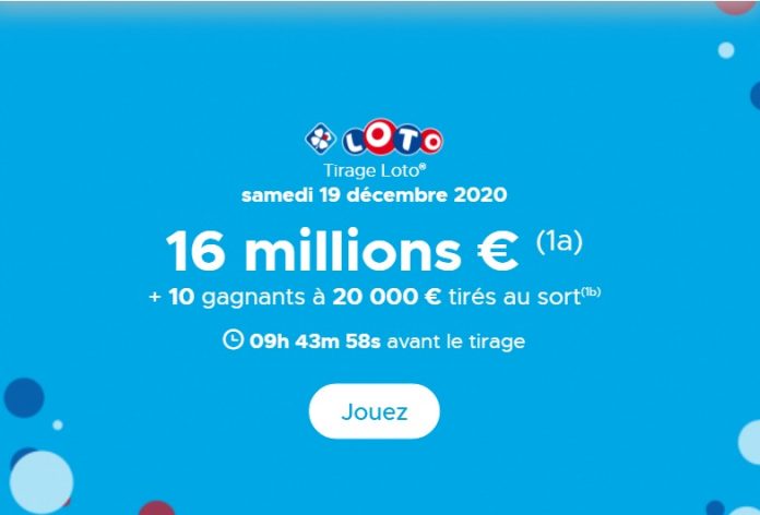 Nous sommes le samedi 19 décembre 2020 et ce soir c’est le tirage du LOTO de la FDJ. Ce samedi nous tentons de gagner le jackpot de 16 Millions d’euros.