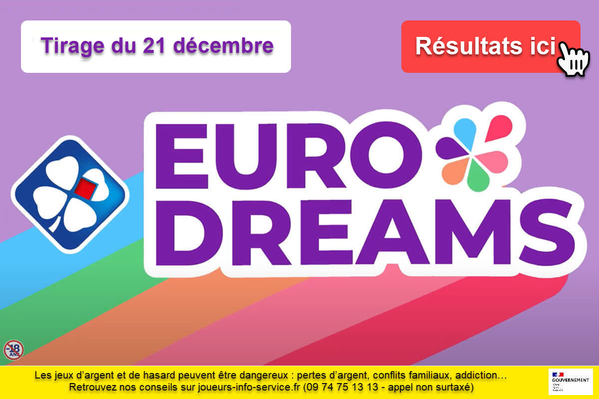 Le tirage EuroDreams de ce jeudi 21 décembre 2023 a dévoilé sa combinaison gagnante : 3 – 15 – 17 – 23 – 26 – 29, avec le N°Dream 4. Les amateurs de chance devront vérifier leurs tickets pour savoir s’ils ont remporté le gros lot de 20 000 euros par mois pendant trente ans.