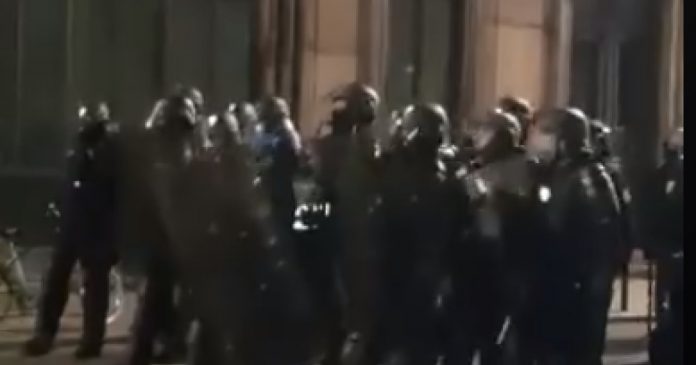 Un policier, filmé par un manifestant, a asséné un coup de tête dans le casque de son supérieur.