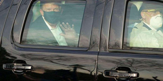 🌐 Flash-Info : Trump retourne à l'hôpital après avoir salué ses partisans de l'intérieur d’un véhicule. 🇺🇸 (AlArabiya) pic.twitter.com/gKv78BDJdO