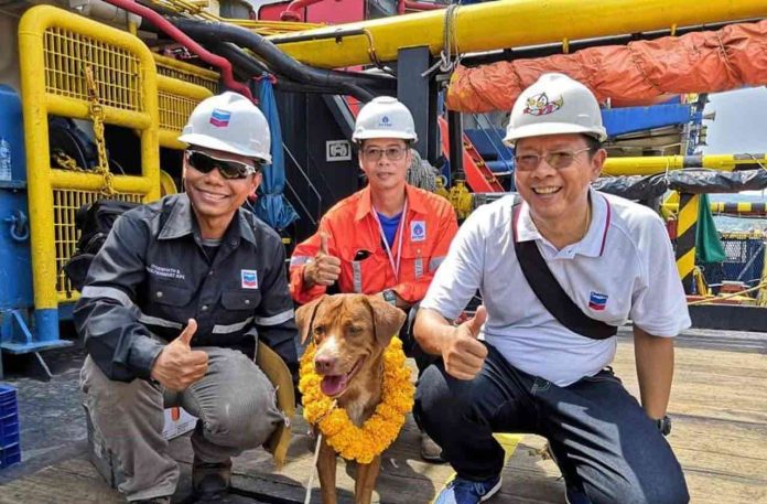 Alors qu’il se trouvait en pleine mer, à 220 km des côtes, en Thaïlande, un chien a été sauvé par les employés d’une plateforme pétrolière.