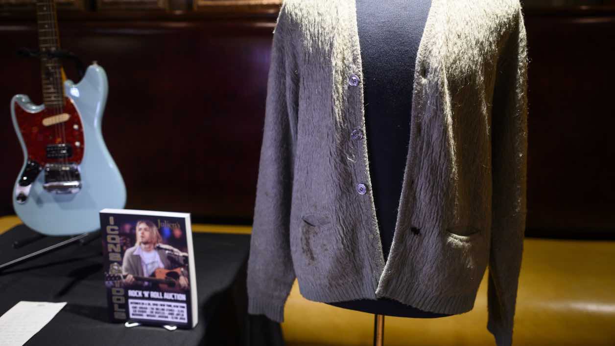 Le gilet en laine vert olive porté par Kurt Cobain lors de l’enregistrement d’ »Unplugged », le concert du groupe Nirvana de 1993, est mis aux enchères cette semaine à New York.