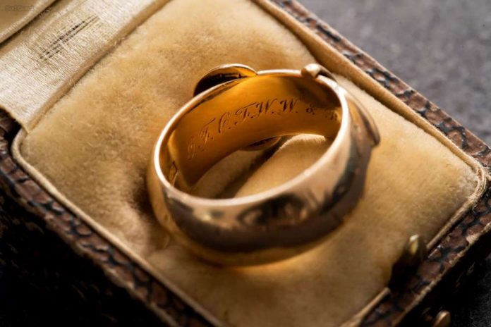 Le bijou était un cadeau de l’écrivain et d’un camarade de classe, Reginald Harding, à leur ami William Ward. L’anneau porte une inscription en grec, qui dit : « Don d’amour, à celui qui souhaite l’amour ». À l’intérieur sont gravées les initiales : « OF OF WW + RRH to WWW ».