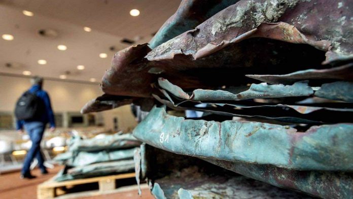Les chercheurs tentaient de retrouver dans les eaux de la mer du Nord les quelque 350 conteneurs perdus en janvier par le MSC Zoe, l’un des plus grands porte-conteneurs au monde. Lors de ces recherches, « des plaques de cuivre et des poutres en bois ont été découvertes, ce qui a immédiatement conduit à l’ouverture d’une enquête archéologique », explique le ministère.