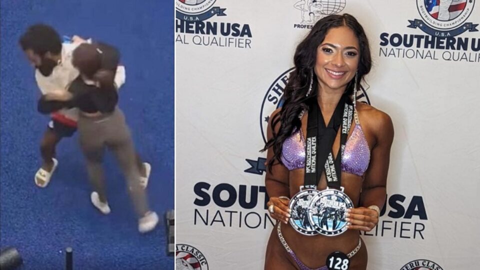 Sur les images, on le voit alors s’approcher d’elle et essayer de l’attraper par la taille. Elle arrive à se dégager et court, son portable à la main, dans une autre partie de la salle de sport. L’homme l’entoure alors avec ses bras, la fait tomber et essaie de la maintenir au sol en se maintenant sur elle. Nashali Alma arrive finalement, au bout de plusieurs secondes, à se dégager et à partir.