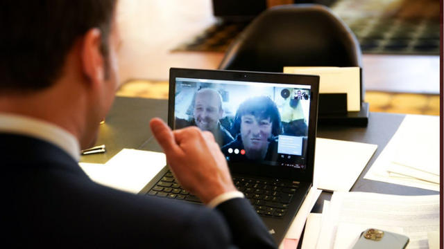 Dans cette séquence, d’une durée totale de cinq minutes et vingt-neuf secondes, le chef de l’Etat apparaît ainsi face à l’écran d’un ordinateur portable pour un tchat vidéo dans lequel il s’enquiert, visiblement enjoué, de l’aventure des deux hommes.