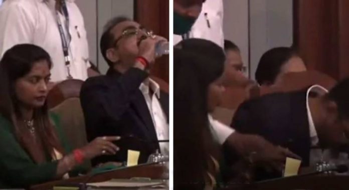 Ramesh Pawar, inspecteur municipal adjoint, a accidentellement bu du gel désinfectant après l’avoir confondu avec une bouteille d’eau lors d’une réunion publique mercredi.